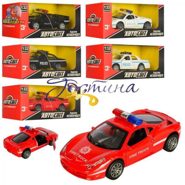 Машинка інерційна АвтоСвіт Служба порятунку, розмір 1:32, 12см. У машинки відкриваються двері, гумові колеса. Машинка виготовлена ??з металу, що робить іграшку міцною і довговічною. З такою іграшкою дитина зможе придумати багато нових сюжетів для гри і весело провести час.  В асортименті.