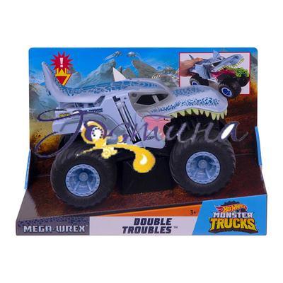 Машинка Hot Wheels Monster trucks Mega wrex з системою трансформації приведе у захват фанатів серії та завзятих автолюбителів. Корпус автомобіля виконаний у вигляді голови лютого та страшного звіра. Колеса великого діаметру здатні підкорити будь-які перешкоди та траси. Виступ в хвостовій частині активує тварину відкривати пащу, демонструючи небезпечні щелепи. Машинка виготовлена у масштабі 1:24 з високим рівнем опрацювання деталей. Допомагає розвивати уяву, координацію, просторове сприйняття, швидкість реакції та логіку. Рекомендовано для дітей від 3-х років.