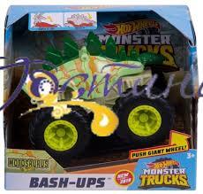 Машинка Hot Wheels Monster trucks Мотоящір з колекції «Потужний удар» створює атмосферу екстремальних перегонів та захопливих трюків. Позашляховик виготовлений в агресивному дизайні з посиленим кузовом, великими колесами та шипів ящера на даху. При зіткненні джипів між собою або автомобіля з перешкодою, його корпус розпадається на декілька частин. Завдяки особливій конструкції джип легко зібрати та продовжити гру. Особливості: великі колеса; литий корпус; масштаб виконання 1:43. Розвиває спритність, швидкість реакції, дрібну моторику рук, просторове сприйняття та фантазію. Рекомендований вік: для дітей від 3-х років.
