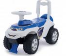 Машина-каталка 'Автошка', упаковка - п / е пакет. Розміри каталки: 70 * 35 * 50 см. Упори запобігають перевертання (спереду і ззаду). Передні колеса повертаються кермом. Музична панель на кермі (веселі пісеньки, ПДР, сирена швидкої допомоги, сирена пожежної машини, сирена поліції, звук заведеного мотора, сигнал клаксона, звук різкого гальмування.). Рекомендована вікова група: 2 роки.