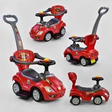 Машина каталка JOY 3766 R каталка-толокар з батьківською ручкою. Сподобається Вашій дитині своїм яскравим кольором і дизайном. Кататися на машинці легко і цікаво, просто відштовхуючись ніжками від землі.Толокар невеликих розмірів, але стійкий за рахунок пластикових коліс. Передні колеса машинки повертаються. На машинці є 2 кнопки, які включають 5 веселих мелодій і підсвічування фар. Завдяки наявності зручного сидіння, підніжок, знімного захисного бамперу і ручок батьківського контролю, навіть найменші дітки будуть відчувати себе комфортно.Працює від 2-х батарейок типу 'АА' 1.5V. Максимальне навантаження: 23 кг. Вага Нетто: 2,99 кг. Габарити виробу: 84 ? 44 ? 85 см. Розмір упаковки: 63 ? 31 ? 35 см. · Вік: 1+.