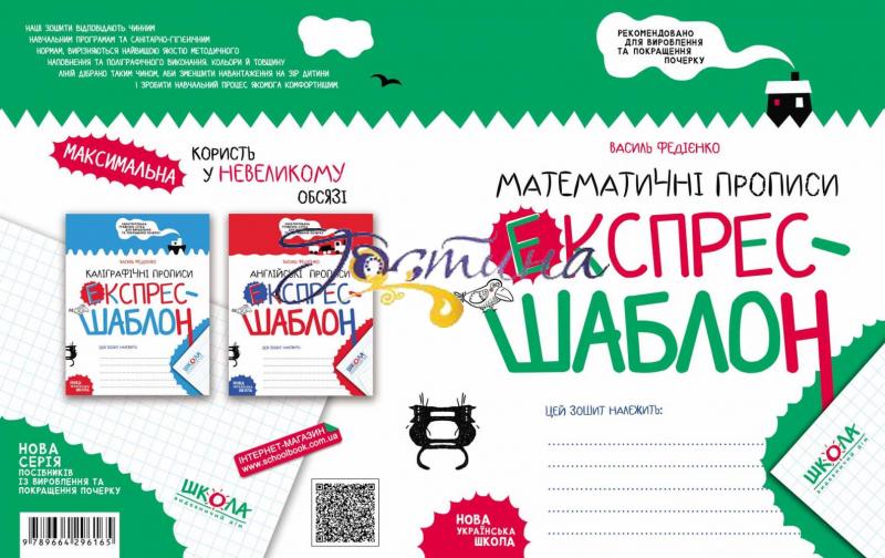 Мета пропонованих "Математичних прописів" — допомогти учневі початкової школи в оволодінні навичками правильного написання цифр. Завдяки використанню клітинок різних розмірів, що поступово зменшуються, а також оптимальній добірці вправ на обведення, дописування і копіювання, дитина зможе швидко й легко навчитися писати цифри та основні математичні знаки.