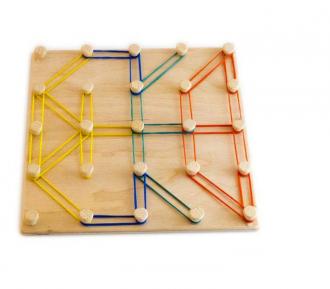Набір дуже простий у використанні і є дерев'яним планшетом на якому розміщено 25 дерев'яних кілочків, відстань між якими 4 см.
