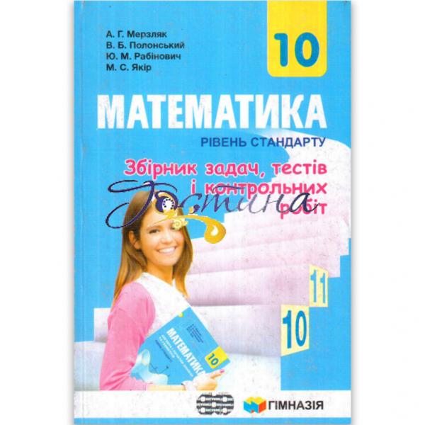 Збірник задач, тестів і контрольних робіт з математики для 10 класу Рівень Стандарту містить додаткові дидактичні матеріали, узгоджені з темами підручника Математика 10 клас Рівень Стандарту Авт: Мерзляк А. Номіровський Д. Полонський В. Якір М.