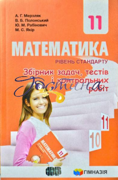 Збірник задач, тестів і контрольних робіт з математики для 11 класу Рівень Стандарту містить додаткові дидактичні матеріали, узгоджені з темами підручника Математика 11 клас Рівень Стандарту Авт: Мерзляк А. Номіровський Д. Полонський В. Якір М. Вид: Гімназія.