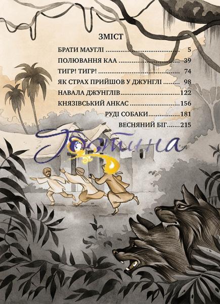 Лауреат Нобелівської премії з літератури Джозеф Редьярд Кіплінг розповідає цікаву історію індійського хлопчика Мауглі, якого прихистила й виховала в джунглях вовча зграя. Сміливий і кмітливий Мауглі разом з вірними друзями переміг зажерливого Шер-Хана, підступних Бандар-логів і лютих Дгоулів — Рудих Собак. Це одна з тих вічних історій, що захоплюватиме і юних, і дорослих читачів у всі часи.