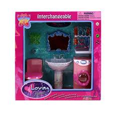 Меблі для ляльки - ванна кімната, раковина, пральна машина, унітаз, світло, на батарейці.