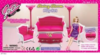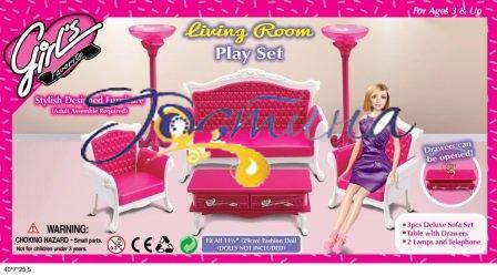 Меблі для ляльок Gloria вітальня. Елементи зроблені з якісного пластику, абсолютно безпечного для здоров'я дитини. Приємне забарвлення, незвичайний дизайн аксесуарів. Матеріал: Пластик Розмір упаковки: 40*7*25,5 см