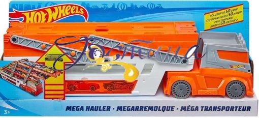 Великий автовоз перевізник HOT WHEELS Mega Hauler - це ідеальний подарунок для власників великої колекції Хот Вілс. З цією іграшкою, все машинки будуть зібрані в одному місці, адже вона вміщує до себе на причіп до 50 машинок. Виготовлений з якісного пластику, головним завданням якого є витримати активне використання в іграх дитини.