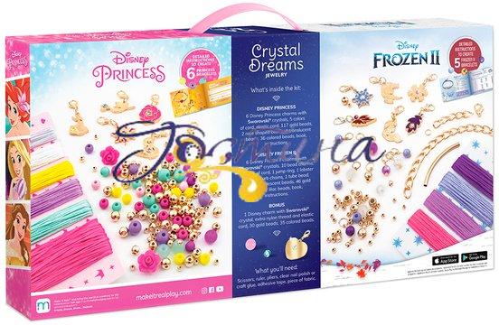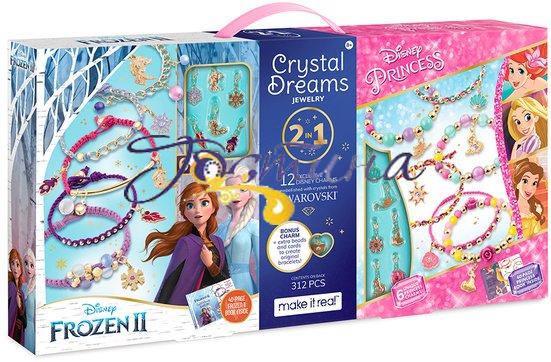 Набір для створення шарм-браслетів Кришталеві мрії — це море задоволення та чаклунства! Блискучі браслети з підвісками — ідеальний спосіб для юних шанувальниць Діснея зануритися в чарівні історії про королеву Ельзу і принцес Анну, Аріель, Белль і Рапунцель. Цей набір містить все, що потрібно дітям для виготовлення 12 унікальних браслетів із гарними підвісками та кристалами Swarovski.