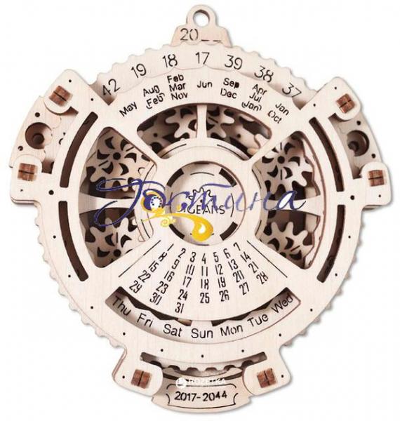 Модель Date Navigator від Ugears – це цікавий механічний календар на 2017-2044 роки з планетарним стімпанк-механізмом з рухомими шестернями всередині. Крім того, він приємно пахне деревиною. Поверніть кільце з поточним роком біля основи навігатора, порівняйте потрібний вам рік і місяць навпроти один одного і з'ясуйте: в який день тижня (понеділок, вівторок .... Неділя) припадає на кожен день місяця.