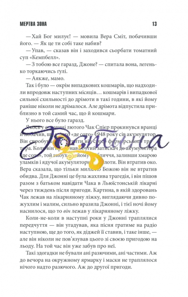 Коли через майже п’ять років Джон Сміт вийшов з коми, він, певно, пожалкував про це. За цей час тіло стало майже чужим, його дівчина обрала іншого, а рідна мати втратила зв’язок з реальністю. А ще треба вчитися жити з аномальною здібністю — бачити чуже майбутнє, лише торкнувшись людини. Тож повернутися до нормального життя не вийде. Особливо після того, як на передвиборчому мітингу Ґреґа Стіллсона Джонні тисне кандидатові руку. Миттєве передбачення вражає: Стіллсон виграє президентську гонку, очолить країну, а потім розв’яже ядерну війну та спричинить глобальну катастрофу. Проте змінити хід історії ще можливо. І в цьому заплутаному лабіринті Джонні бачить лише один вихід: вбити Ґреґа Стіллсона.