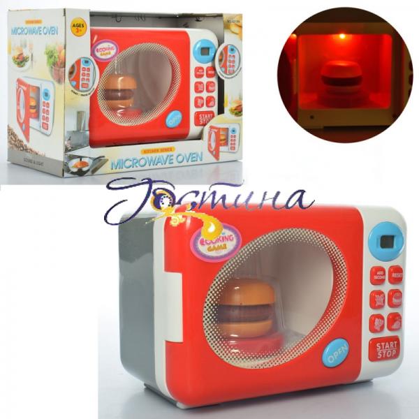 Ваша дитина любить грати в кухаря? Тоді цей подарунок буде дуже до речі! Іграшкова мікрохвильова піч. При натисканні на кнопку всередині загориться лампа, а шматочок піци, кимось дбайливо туди покладений, почне обертатися і «розігріватися». Зовсім як в житті! Виріб радує малюків своєю реалістичністю. Підходить для гри дітям від трьох років і старше.