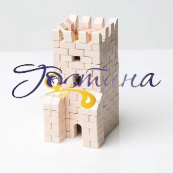 За допомогою цеглинок, які входять до набору та клею, збудуйте в'їзну башту. Обов'язково після побудови кожних 2-3 рядів, зачекайте кілька хвилин, щоб клей підсох та міцніше скріпив цеглинки. Виріжте картонне перекриття для даху та наклейте на верхівку. Викладіть один ряд цеглинками 20х10 мм, а потім змастіть клеєм та акуратно викладіть верхні цеглинки. Залишіть на 20 хвилин, щоб підсох клей. При будівництві звертайте увагу на розміщення цеглинок згідно схеми. Модель можна розібрати, зануривши у воду на 30 хвилин. Ретельно змивши клей, залишіть підсохнути. Після того, як цеглинки висохнуть, ви можете побудувати щось інше, використовуючи власну фантазію. Успіхів Вам!