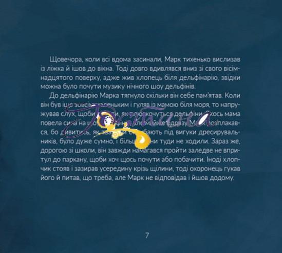 Знайомство хлопчика Марка, який не розмовляє, з маленьким дельфінятком на ім’я Матіс переросло у глибоку і дивовижну дружбу. Марк дбає про Матіса в дельфінарії і водночас розуміє, що його друг потребує найважливішого — свободи. Адже у дельфінарії ці чудесні тварини дуже страждають від тісняви і сліпнуть від хлорованої води. Марк вигадує спосіб, як звільнити Матіса та його батьків, а також — решту дельфінів. Але чи вдасться хлопцю порятувати своїх улюбленців? Читайте у третій книзі письменниці Євгенії Завалій із серії «Місія “Порятунок”».