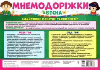 Мнемодоріжки — графічні схеми, в основі яких лежать асоціації, які полегшують засвоєння матеріалу. В наборі 8 аркушів із 16 мнемодоріжками. Тому набір підійде для роботи як у групі чи класі, так і для індивідуального навчання. Доріжки розрізають. Працювати можна з кожною окремо або групувати кілька доріжок.