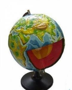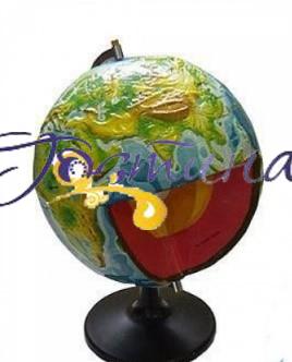 Модель демонструє зовнішню та внутрішню структуру будови Землі. Виготовлена з пластика у формі глобуса. Діаметр моделі: 320 мм. Габаритні розміри: 34 х 34 х 34 см. Вага: 1,8 кг.
