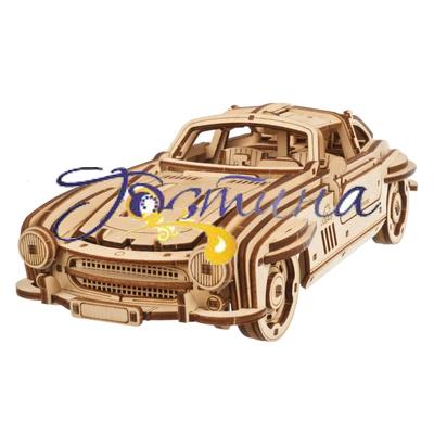 ривимірний пазл Ukrainian Gears Крилате спорткупе витончена модель купе, що має 2 режими роботи: завести автівку ключем, розташованим під шасі; потягнути її назад уздовж рівної поверхні та відпустити. Автомобіль також має капот, що піднімається, демонструючи двигун. Модель виготовлена з високоякісної фанери, деталі попередньо вирізані лазером у дошках — вам потрібно лише дістати їх легким натискуванням та з’єднати між собою. Складаючи Крилате спорткупе, як і всі інші 3D-конструктори Ugears, використовуйте, будь ласка, віск та наждачний папір, щоб обробити рухомі деталі для їх кращої роботи. Крилате спорткупе має легкий рівень складності. Все необхідне для складання ви знайдете в коробці. Цей механічний дерев’яний конструктор обіцяє понад 4 години захопливого складання, після чого ви зможете покликати своїх близьких і рідних та похизуватися своєю особливою автівкою. Розмір моделі: 24 х 12 х 11 см. Кількість деталей: 262.