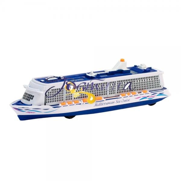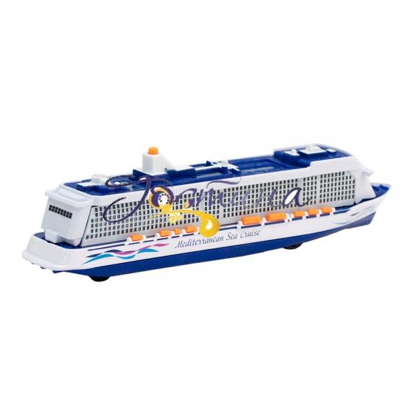 Модель Круїзний Лайнер від компанії Технопарк виконаний у яскравому синьо-білому кольорі з міцного матеріалу. Іграшка стане чудовим подарунком для маленького колекціонера. Автомодель оснащена світловими та звуковими ефектами, якщо натиснути на кнопку зверху — заграє музика, пролунає гудок або увімкнеться сирена, вікна на палубі почнуть світитися. Іграшка живиться від 3 батарейок типу А76. Іграшка допоможе дитині розвинути свою фантазію та уяву, вигадуючи нові сюжети для ігор, а також тренує дрібну моторику рук та координацію рухів. Рекомендована дітям від 3-х років.