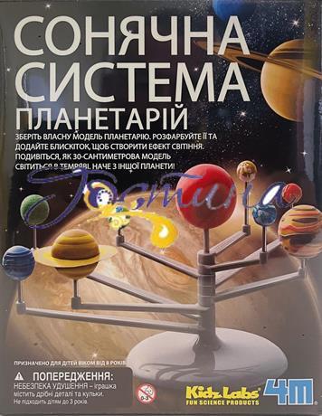 Як виглядають планети та їх рух в космосі? Для маленьких дослідників зоряного неба пропонуємо набір для створення сонячної системи-планетарію. Ви зможете разом з дитиною власноруч зібрати настільну модель діаметром 30 см, яка обертається.