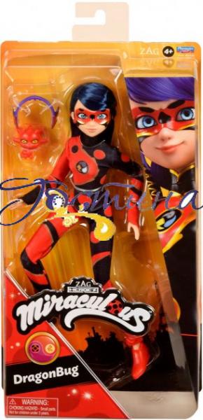 Нова пригода! Марінетт об'єднала сили Леді Баг і Дракона та перетворилася на Дракона Баг! Новий костюм, маска та обруч роблять її чарівною! Висота ляльки 26 см. Гарне волосся, зібране в зачіску, новий костюм! 15 точок артикуляції, у комплекті Квамі Лонгг та обруч із "плавниками дракона". Гра з лялькою розвиває в дитини уяву, фантазію та вміння гратися. Рекомендовано для дітей від 4 років.