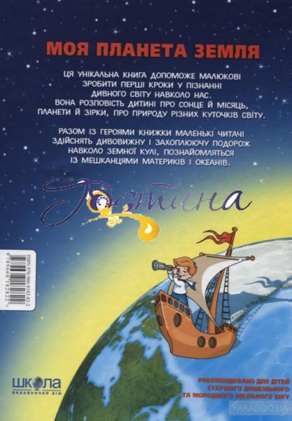 Енциклопедія від видавництва «Школа», створена Василем Федієнком за програмами, рекомендованими Міністерством освіти України. Вона коротко познайомить дошкільнят та молодших школяриків із Землею – нашим космічним домом, внутрішньою будовою, Місяцем та Сонцем, неживою та живою природою, кругообігом води, проведе подорож материками, розповість про їхніх мешканців, населення, природу. Яскраві зрозумілі ілюстрації, цікаві розповіді, що знайомлять із новими термінами, поняттями – все це допоможе маленьким читачам із задоволенням прочитати енциклопедію від початку до кінця.