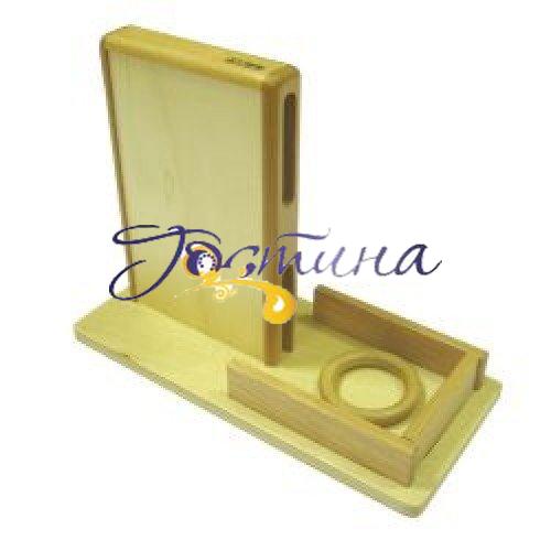 Коробочка з двома прорізами закріплена на підносі. В комплекті два дерев'яних кільця. Дитина відпускає дерев'яне колечко в верхній проріз і спостерігає, як воно викочується з нижнього прорізу. Радіє і повторює знову. Розвиток концентрації уваги, координації рухів, дрібної моторики.