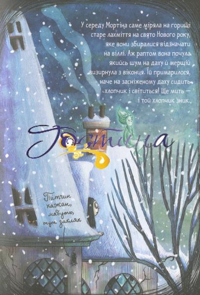 Напередодні Нового року на Покинутій віллі з’являється таємничий хлопчик-привид. Звідки ж він узявся? Саме це й намагається з’ясувати Мортіна, дівчинка-зомбі, та її вірний пес Смуток. Мортіна на все зважиться заради друга: і відірве собі руки-ноги, і викине голову у вікно, і прокрадеться в церкву, і навіть… сховається в труні. Страшно? Авжеж! Історія про Мортіну здобула світову популярність і перекладена понад 20 мовами.