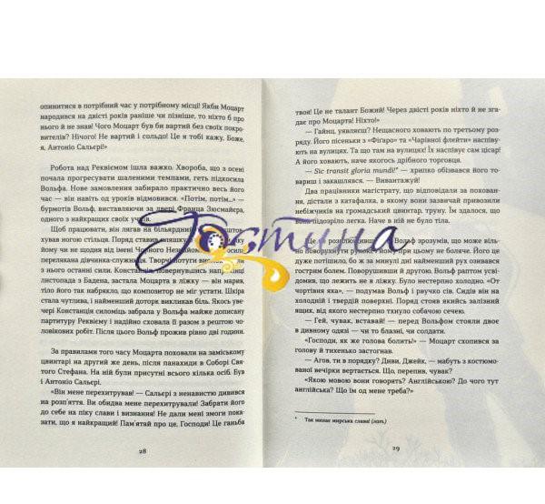 Уявіть собі — Моцарт у сучасному Нью-Йорку! Так-так, той самий, Вольфганг Амадеус. У сучасному місті його вражає і дивує усе: метро та галас, одяг, особливо жіночий, спосіб життя, звички й манери людей. Навіть вбиральні тут такі пахучі і красиві, наче у цісарському палаці. А ще, виявляється, сучасний рояль суттєво відрізняється від звичного Моцартові клавікорда… Та доведеться пристосовуватися, адже видатному композиторові хоч і випав шанс на нове життя, але дещо залишається незмінним — музика і Моцарт нероздільні. У цій книжці переплітаються вигадка й реальні та дуже цікаві факти про життя і творчість Моцарта, детективний сюжет за участі нової подруги композитора офіціантки Стейсі та роздуми про сенс життя. А завдяки дотепним ілюстраціям від Юлії Самелюк і QR-кодам із відеороликами, що розкривають секретики створення книжки, читачі поринуть в особливу атмосферу цієї історії.