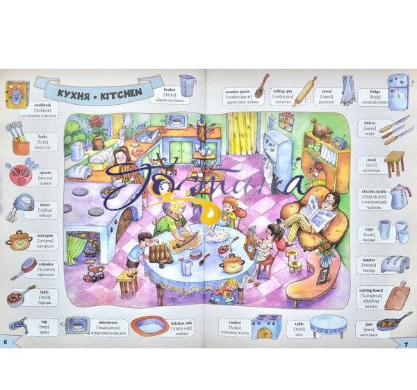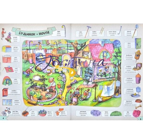 Завдяки цій книзі Ваш малюк зможе поповнити свій словниковий запас безліччю англійських слів. А ще – розвинути образне мислення, мовлення, увагу, пам’ять і фантазію. І все це – на тлі постійної гри! Адже дуже цікаво розглядати яскраві картинки і вивчати підписи до них, відшукувати дрібні деталі на загальних ілюстраціях і читати кумедні вірші. А завдяки великій кількості слів, транскрипцій та ілюстративного матеріалу видання довго не набридне дитині і буде корисним протягом усього періоду навчання в початковій школі. Уроки можуть бути легкими й цікавими!