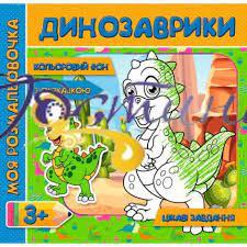 Моя розмальовка з кольоровим фоном підказками та цікавими завданнями Динозаврики