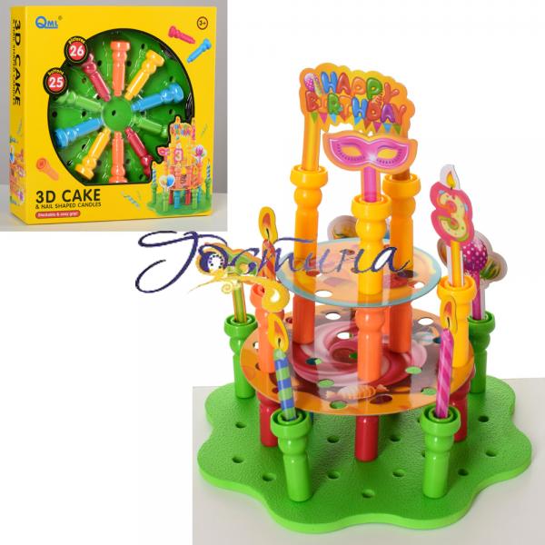 Мозаїка M10B, торт, картинки, в коробці. Розмір - 26-26-6,5см. Матеріал - пластмаса. Тип упаковки - Window Box. Розмір торта в зібраному вигляді 23x23x25 см. Комплектація: 25 кілочків, 26 картинок, 1 підставка. Рекомендується для дітей у віці 3 +