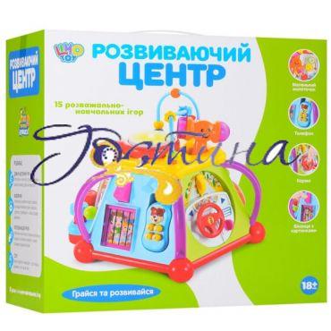 Велика багатофункціональна розвиваюча іграшка зі звуковими і світловими ефектами. Дитина обов'язково знайде собі заняття. З нею можна стукати, крутити, переберать, клацати, рахувати намистинки, співати, дзвонити другові, керувати автомобілем - все, що прийде по душі маляті.