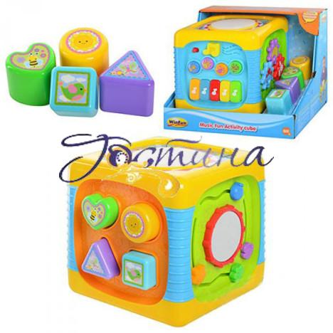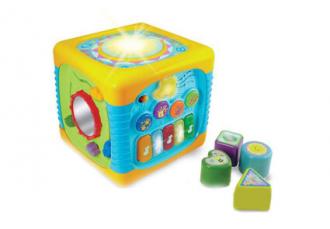 Це відмінний розвиваючий ігровий музичний кубик, завдяки якому у дитини розвивається дрібна моторика, поліпшується слухове і зорове сприйняття предметів. Розвиваючий музичний кубик - сортер WinFun 0741 NL включає в себе 5-ти нотне піаніно і ігрова поверхня барабана з підсвічуванням 4 кнопки: звуки різних інструментів, забавні звуки, веселі мелодії, звуки тварин. Звуки барабана при ударі по поверхні барабана, що змінює колір У комплекті 3xAA батарейки. Виробник: WinFun американський виробник розвиваючих іграшок для дітей. Компанія вже більше 20 років виготовляє іграшки, які відповідають американським і європейським стандартом якості.