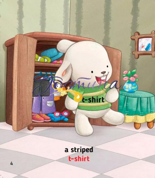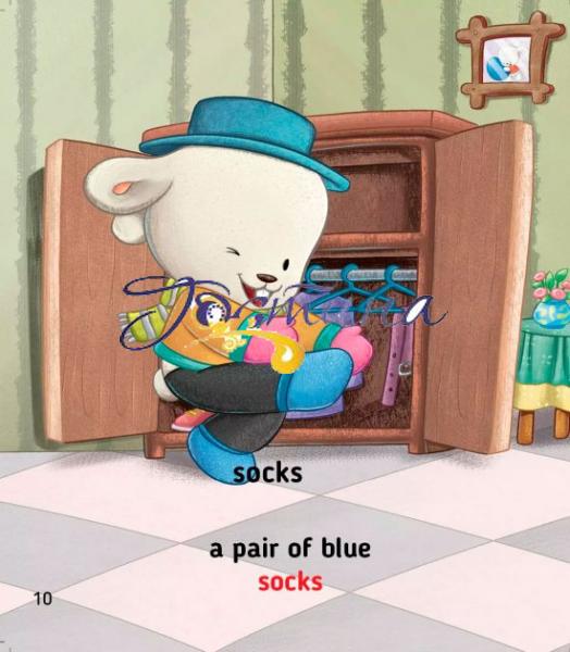 "Мій одяг". Вона познайомить малюків з різними речами, що Бреді знаходить у шафі. Футболка, штани, шапка, піджак, сонячні окуляри, - і це ще не все. Вивчайте предмети з книги, а потім шукайте з дитиною такий одяг у себе вдома. Хіба не весело?