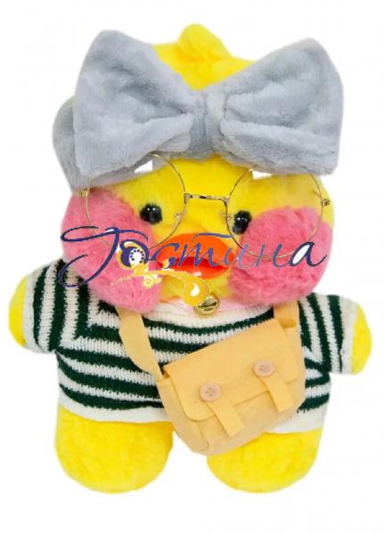Неймовірна м'яка іграшка качка Лалафанфан - найпопулярніша іграшка для хлопчиків та дівчаток. М'яка качечка здатна підняти настрій і дітям, і дорослим завдяки своєму смішному вигляду. Відео з м'якою іграшкою качечкою Лалафанфан - модний тренд серед дітей та підлітків у Tik-Tok та Instagram. Тепер ігри вашої дитини стануть ще цікавішими та різноманітнішими. Качка із плюшу просто створена для веселої гри. Каченя, виконане з приємних на дотик текстильних матеріалів, має кумедний пластиковий дзьоб оранжевого кольору і маленькі вічка-ґудзички. Дитина зможе переодягати іграшку самостійно, оскільки одяг чудово знімається. Качка Лалафанфа дуже приємна на дотик і обов'язково стане однією з улюблених іграшок. Характеристики: - Колір: жовта качечка з сірим бантом і в тільнику; - матеріал: синтепух, плюш; - Тип іграшки: качка; - Розміри: довжина повністю (з урахуванням чубчика) – 30 см; ширина ≈ 21 см; глибина ≈ 12 см; - вага іграшки: 200 г; - вікова група: від 3 років; - стильна іграшка качечка одягнена у светр, окуляри, з пов'язкою на голову та сумочкою; Комплектація: - Іграшка качечка - 1 шт - Поліетиленова упаковка Колір товару може відрізнятися від кольору на зображенні