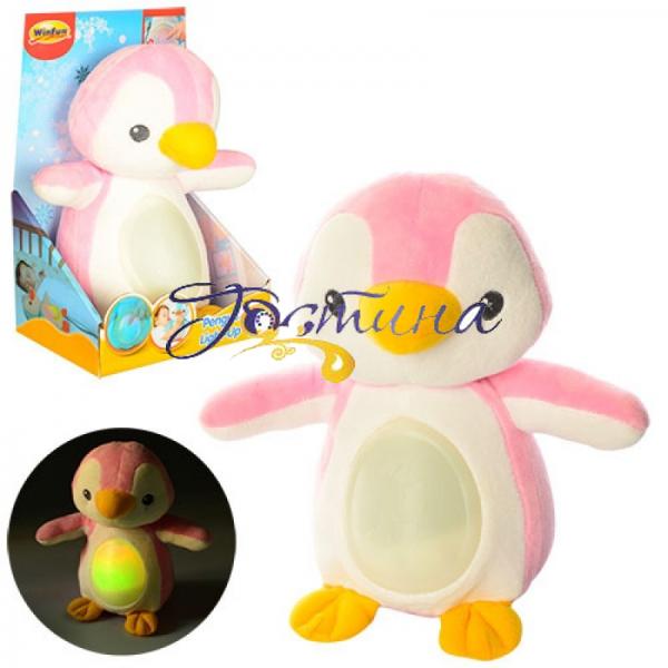 М'яка іграшка-нічник WinFun Пінгвін здатна програвати приємні мелодії і світитися м'яким ненав'язливим світлом. М'яку іграшку-нічник WinFun Пінгвін можна використовувати в якості нічника або приємної м'якої іграшки, яка заспокоїть плач малюка і допомогти йому заснути. Особливості м'якої іграшки-нічника WinFun Пінгвін:розмір: 22 см;музика;звуки природи.