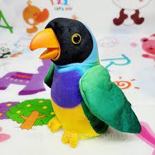 М'яка іграшка-повторюшка папуга 18см, повторює голос, ворушить дзьобом, 4 кольори, пак. 20см