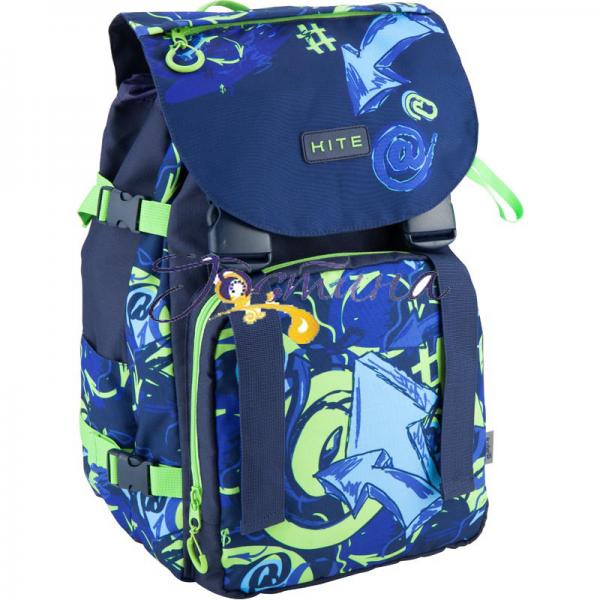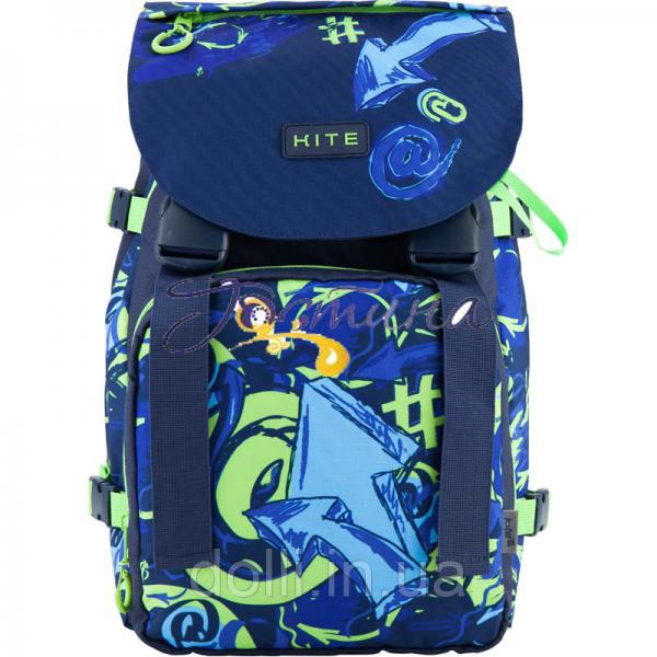 Рюкзак Kite K18-817M-2 виконаний з поліестеру темно-синього кольору з принтом, має салатову підкладку. Виріб розроблено спеціально для модних і активних юнаків та дівчат 13-17 років. Анатомічна ущільнена спинка і лямки правильної S-подібної форми, щільно прилягають до спини, мінімізують тиск на плечі і хребет, дарують відчуття комфорту. Рюкзак складається з 2 відділень, внутрішнього, 2 передніх і 2 бічних кишень. Переднє відділення укомплектоване зручним органайзером і знімною ключницею. Рюкзак утягивается на шнурі і закривається за допомогою 2 фастексов. Це зручно і дозволяє надійно закріпити вміст аксесуара. Також рюкзак можна звузити за допомогою 2 бічних фастексов. Регульовані лямки і малу вагу, всього 790 г, дарують відчуття легкості і дозволяють взяти з собою більше потрібних речей. Рюкзак оснащений світловідбиваючими елементами.