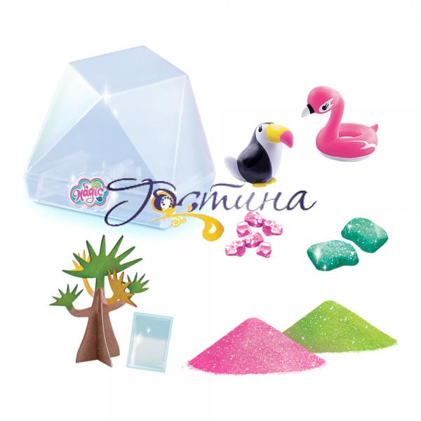З набором для експериментів Canal Toys So magic «Магічний сад. Тропічний» дитина зможе створити казковий світ тропіків усередині чарівного кристала. Процес «вирощування» займає понад 12 годин. Готовий акваріум можна використовувати для прикрашання інтер'єру або як майданчик для гри.