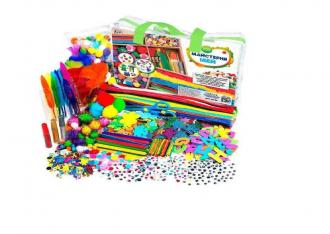 Чарівна скринька містить набір різноманітних матеріалів, включаючи пухнасті та плетені стрічки, нитки різних відтінків, нитки для вишивання, а також дрібні намистини, прикраси, м’які помпони та багато іншого. Кожен елемент цього набору допомагає створити унікальні вироби, обмежуючись лише власною фантазією.