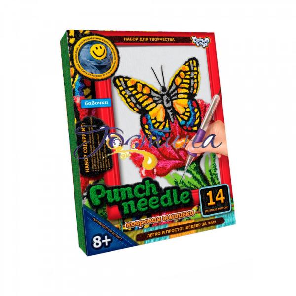 Набір для дитячої творчості Килимова вишивка Danko Toys "Метелик" відмінний варіант подарунка підходить абсолютно всім. Знадобиться лише трохи часу на освоєння техніки вишивання та декоративний виріб hand made прикрасить інтер'єр дитячої кімнати. Набори креативної творчості від ТМ Данко Тойс Punch needle "Метелик" окрім полотна схеми укомплектовані нитками муліне в 14 кольорах, багетною рамкою, канцелярськими кнопками, ручним ткацьким верстатом, нитківдівачем та докладною інструкцією майстер.