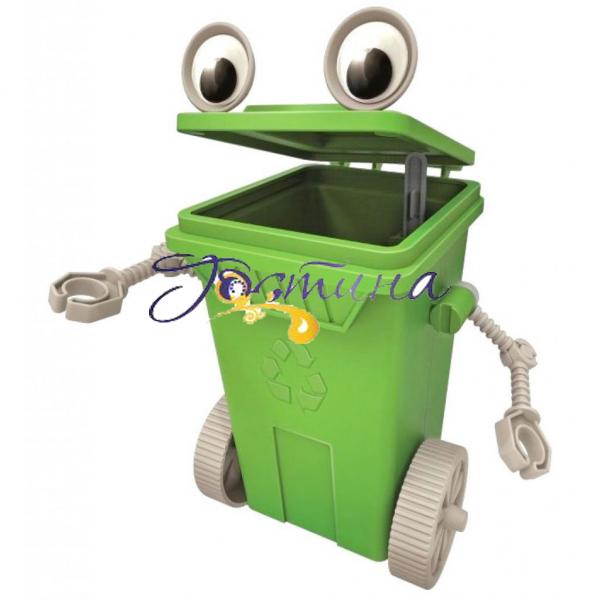 Зберіть дивного робота-сміттєвий бак, який вміє їздити по столу або підлозі, відкриваючи і закриваючи кришку. Кумедний робот допоможе зберігати чистоту в будинку.