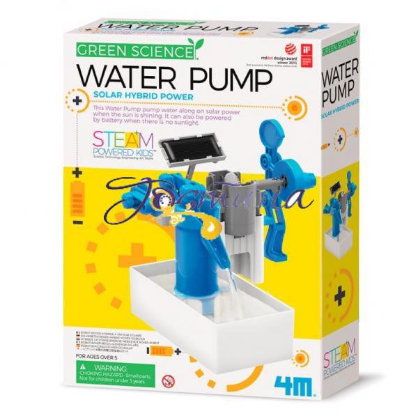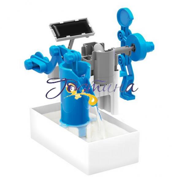 Науковий набір від 4M Водяний насос на сонячній батареї дозволить зібрати діючу насосну установку з рухливою фігуркою чоловічка. Пристрій перетворює енергію сонця або батареї в енергію для прокачування води.