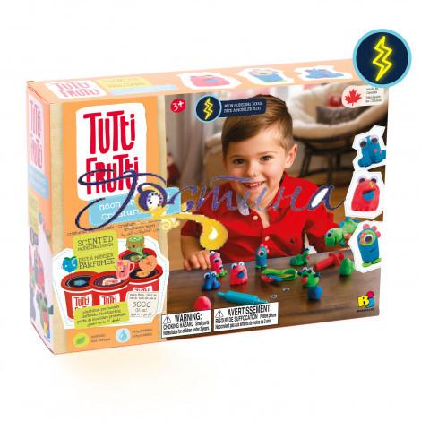 Цей набір пластиліну від Тутті Фрутті подарує маляті безліч годин захоплюючої гри з веселими монстриками. У набір входить комплект веселих вічко для монстриков, за допомогою яких дитина зможе оживити будь-який вигаданий ним істота. У комплект входить набір необхідних аксесуарів і 3 упаковки з масою для ліплення Тутті Фрутті.
