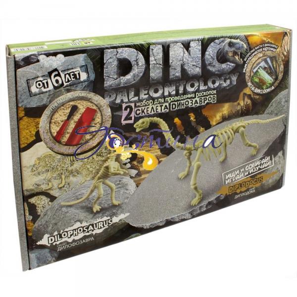 Набір для проведення розкопок Dino Paleontology – чудовий ігровий набір, який дозволить наблизитися до світу давнини та приміряти роль археолога. У комплект входить гіпсовий пласт із двома іграшковими скелетами динозаврів, пензлик та стек, а також гра-вікторина з енциклопедичними відомостями та цікавими фактами про життя динозаврів. Набір Dino Paleontology допоможе розвинути дрібну моторику та спритність дитини, активує акуратність та посидючість, розширить кругозір.