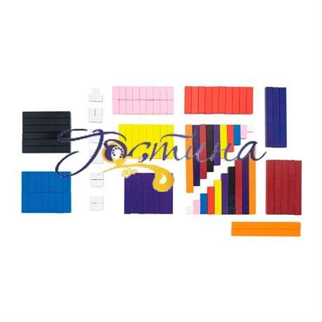 У наборі 116 паличок від 1 до 10 см. Кожна паличка в наборі – це число, виражене кольором і величиною. Елементи однакової довжини пофарбовані в один колір і представляють конкретне число. Також вони діляться на групи за кратністю.