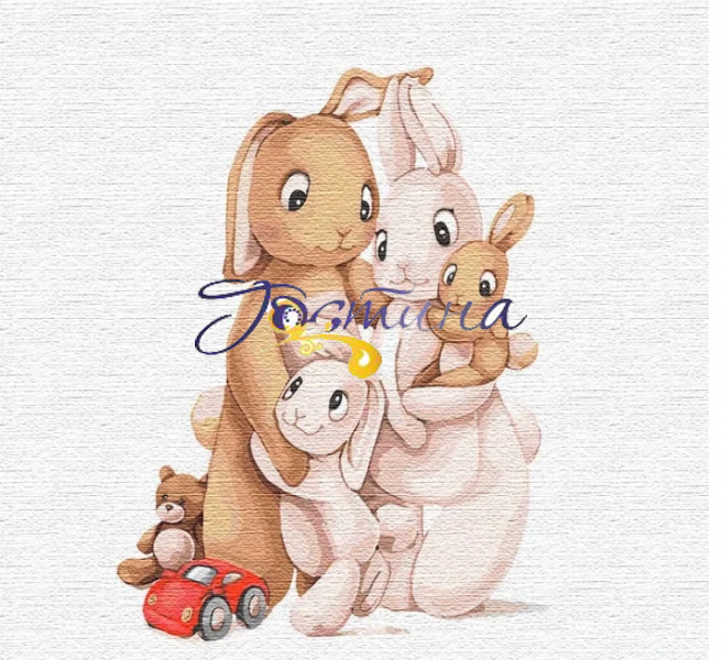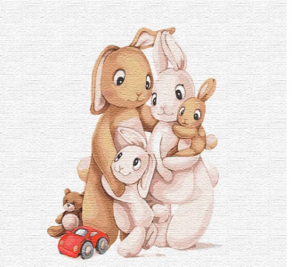Набір для розпису по номерах. "Маленька сім'я кроликів" 30*30см