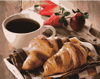 Набір для розпису по номерах VA-2617 "Ранкова кава з круасанами", розміром 40х50 см