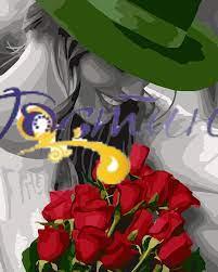 Картина-розмальовка Дівчина у зеленому капелюсі розфарбовується без змішування фарб.